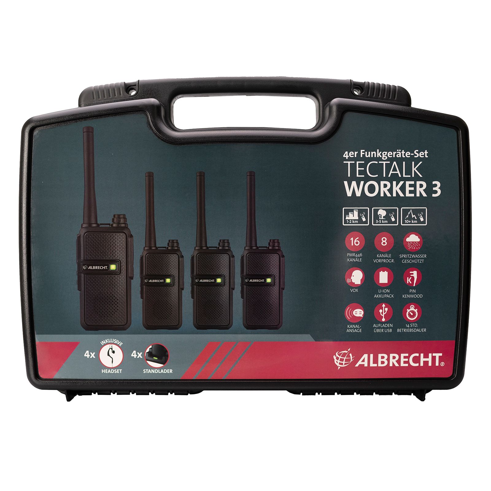 Το TECTALK WORKER 3 της Albrecht είναι ένας πομποδέκτης με 16 κανάλια PMR, λειτουργία Battery Save και VOX. Διαθέτει στιβαρή καμπίνα και είναι ανθεκτικός στη βροχή, γεγονός που τον καθιστά το κατάλληλο εργαλείο για λειτουργία σε εξωτερικούς χώρους. Έχει εμβέλεια έως 10 Km και προσφέρει αυτονομία έως και 14 ώρες.